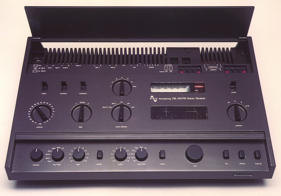 At the time Armstrong always included a ‘customer feedback’ card to be returned with the warranty registration. They then studied the comments and replies to try and ensure new designs would incorporate any features or changes that people would find desirable. At the time Armstrong’s most popular units were the 625 and 626 tuner-amps (receivers). Barry Hope and John Twydell then did a ‘mock up’ design model to show to people along with a list of specifications to get their reactions. The result was the 726 Receiver.